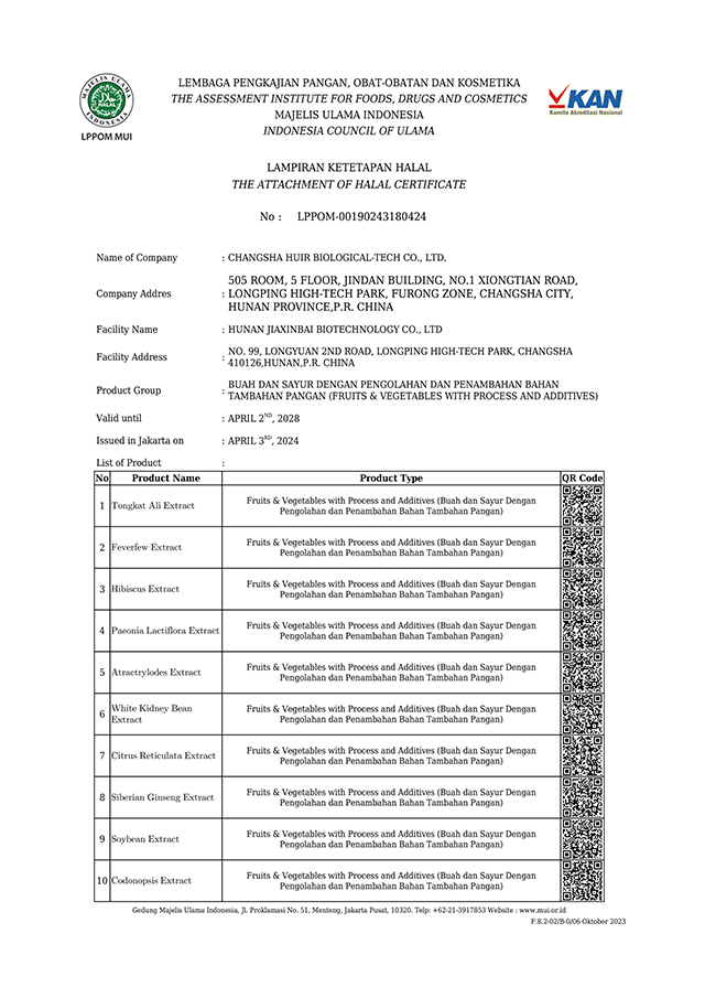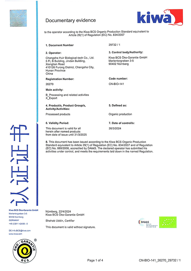 先后通過了Halal(清真認(rèn)證)、Kosher(猶太認(rèn)證)、NOP organic certificate(美國有機(jī)認(rèn)證)、cGMP、ISO9001、ISO22000、HACCP、FSSC22000、ISO 14001:2015 、ISO45001:2018、知識產(chǎn)權(quán)管理體系、職業(yè)健康管理體系、環(huán)境管理體系等14項(xiàng)國際、國內(nèi)認(rèn)證。